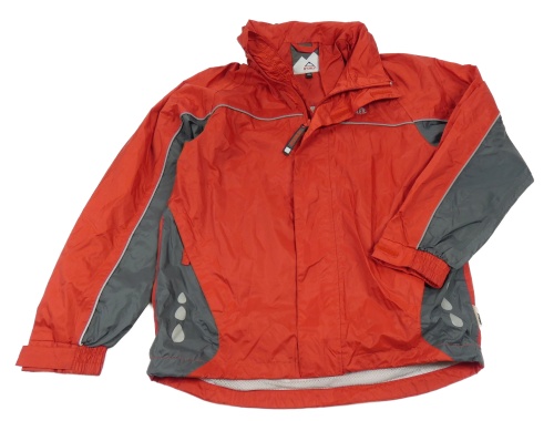 • Červeno-tmavosivá šušťáková funkčná jarná bunda s ukrývací kapucňou McKinley