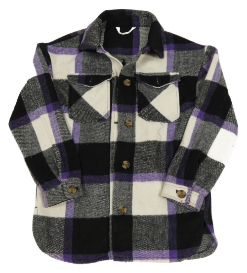 Čierno-fialovo-biela kockovaná košeľová vlnená bunda H&M