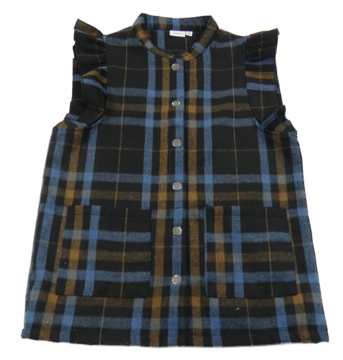 Čierno-modro-hnedá kockovaná flaušová vesta Name it