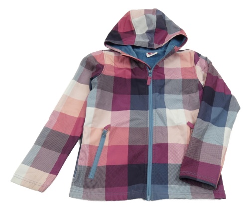 Ružovo-tmavomodro-biela kockovaná softshellová bunda s kapucňou Yigga