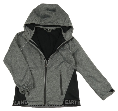 Sivo-čierna softshellová bunda s kapucňou