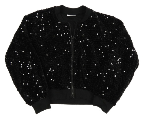 Čierna zamatová flitrová podšitá crop bunda