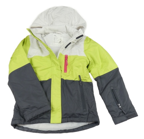 Bielo-zeleno-sivá šušťáková zimná lyžiarska fukční bunda s kapucňou Crane