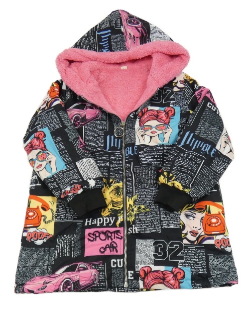 Čierno-farebná šušťáková zateplená bunda s dievčatkom a kapucňou