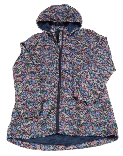 Tmavomodrá kvietkovana šušťáková jarná parka s odopínacíá kapucňou H&M