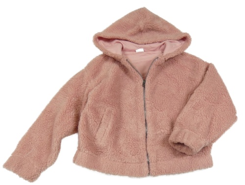 Svetloružová huňatá podšitá crop bunda s kapucňou Zara