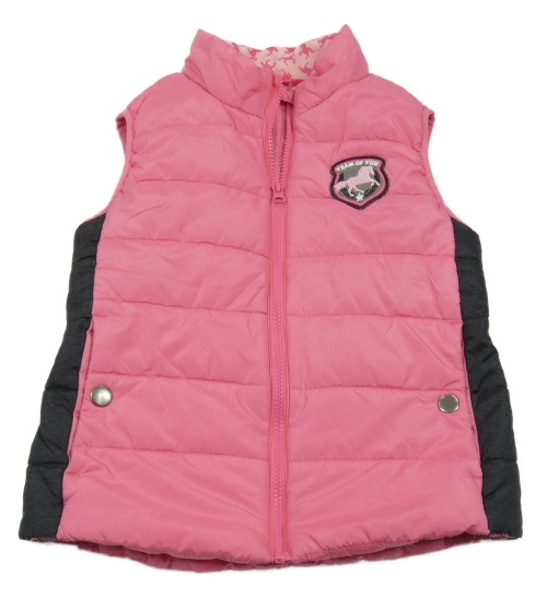 Ružovo-čierna šušťáková zateplená vesta s nášivkou Crane
