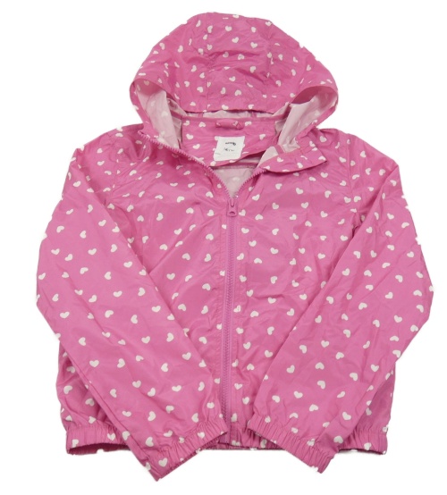 Fuchsiová šušťáková jarná bunda so srdiečkami a kapucňou Sinsay