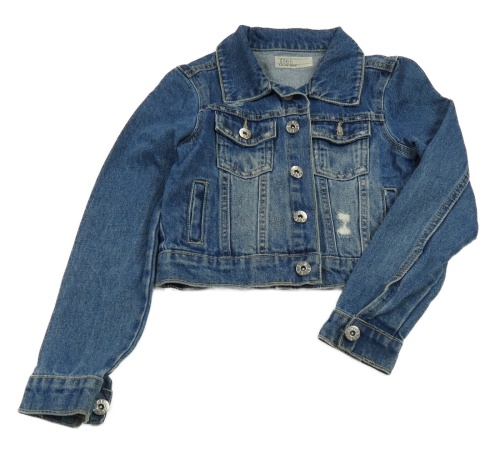 Modrá rifľová crop bunda s vyšúchaním Denim