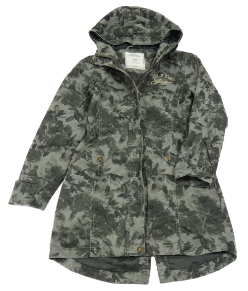 Khaki kvetinová plátenná jarná parka s fľakmi a kapucňou