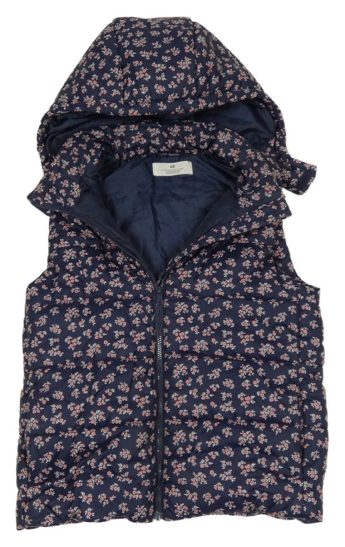 Tmavomodrá kvetovaná šušťáková zateplená vesta s kapucňou H&M