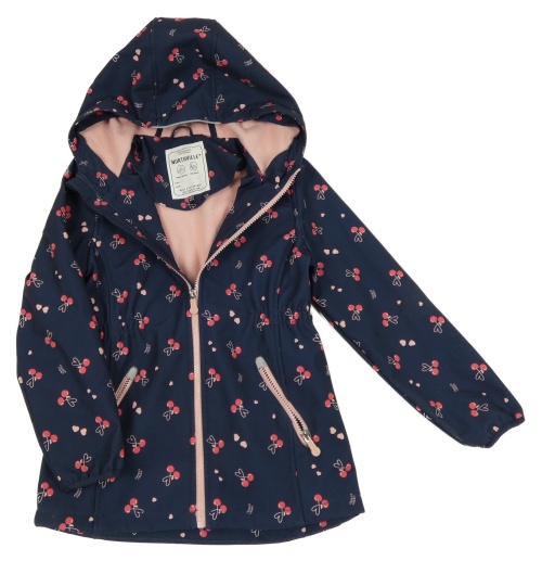 Tmavomodrá softshellová parka s třešničkami a srdiečkami a kapucňou C&A