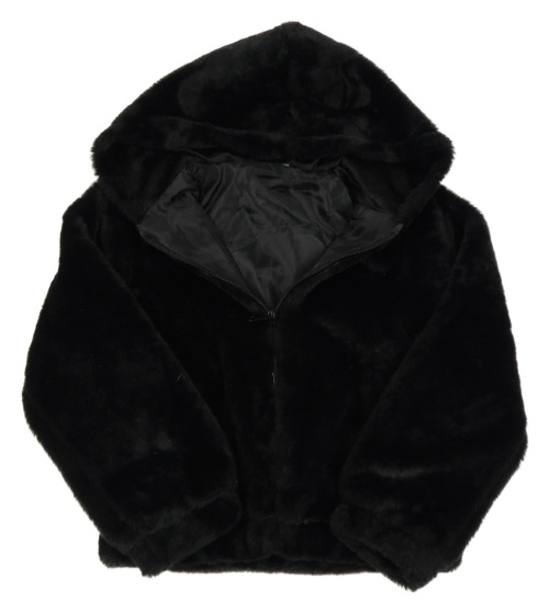 Čierna kožušinová podšitá crop bunda s kapucňou