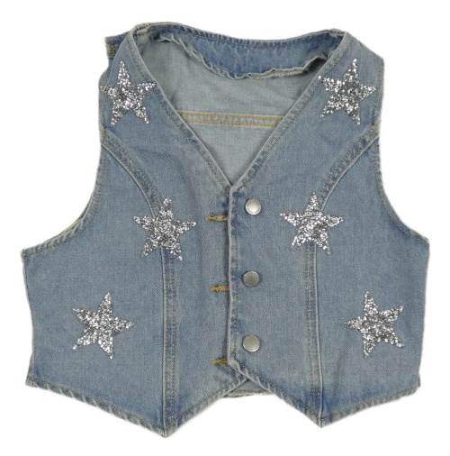 Svetlomodrá rifľová vesta s hvězdami z kamínků Shein