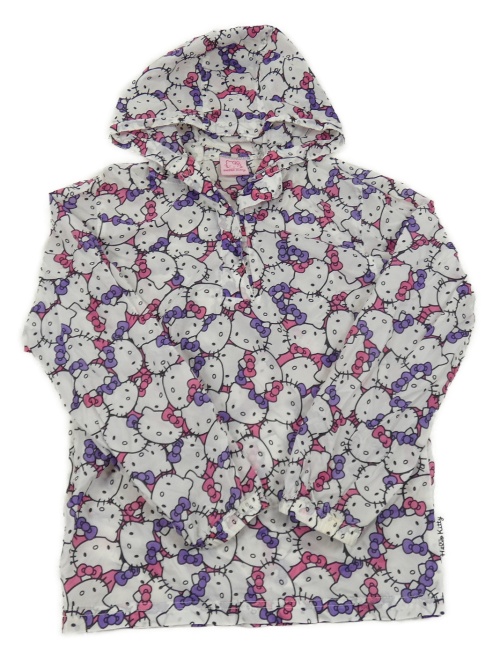 Bielo-fialová šušťáková ľahká vetrovka s Kitty a kapucňou