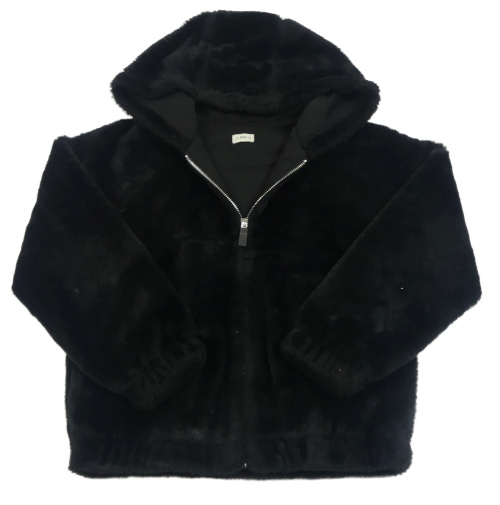 Čierna kožušinová bunda s kapucňou F&F