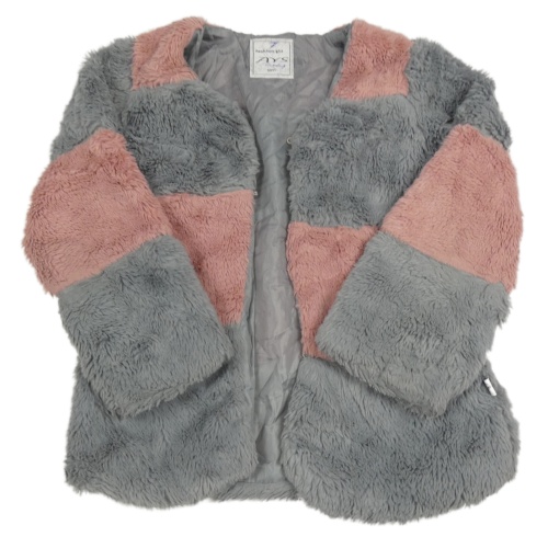Sivo-staroružová pruhovaná kožušinová podšitá bunda