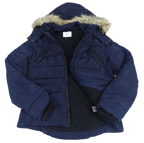 Tmavomodrá šušťáková zimná bunda s kapucňou s kožešinou Matalan