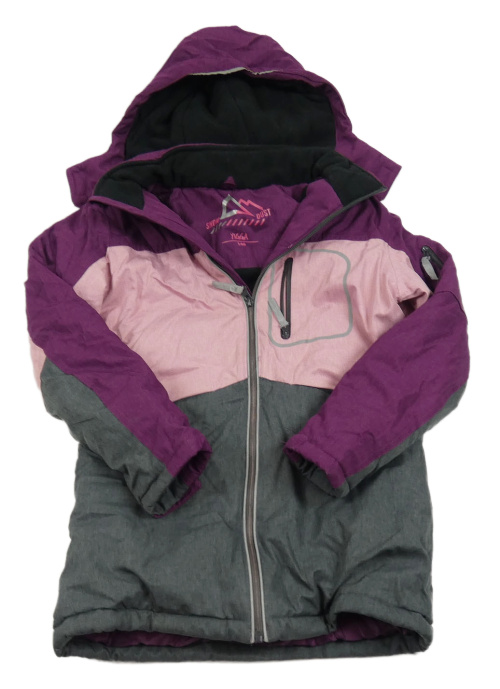• Švestkovo-ružovo-tmavosivá melírovaná šušťáková zimná lyžiarska bunda s odopínacíá kapucňou YIGGA
