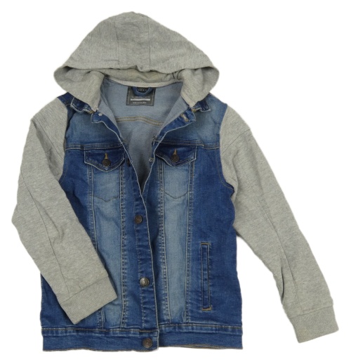 Tmavomodro-sivá riflovo/tepláková bunda s kapucňou Primark