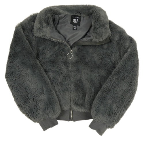 Tmavosivá chlpatá podšitá crop bunda New Look