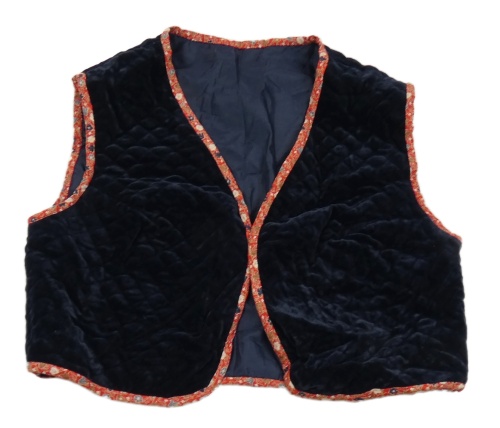 Tmavomodro-červené prošívané semišové podšité bolérko s kvietkami