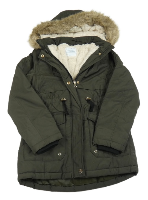 Khaki šušťáková zimná parka s kapucňou s kožešinou Primark