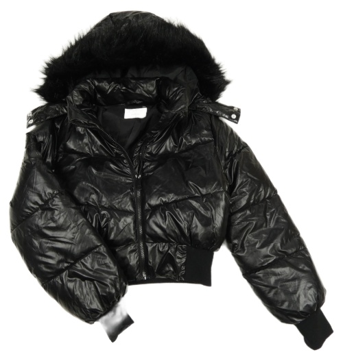 Čierna šušťáková prešívaná zimná crop bunda s kapucňou Matalan