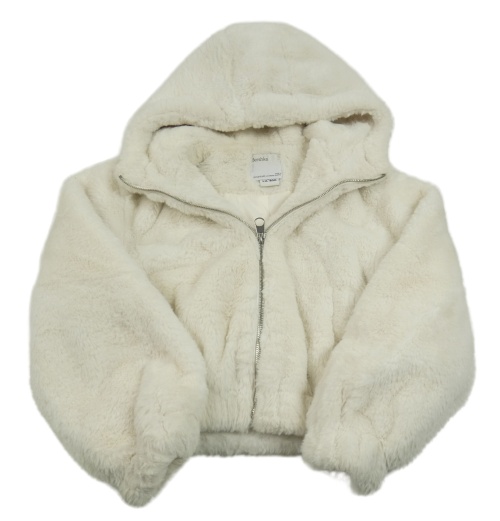 Smotanová kožušinová podšitá crop bunda s kapucňou Bershka