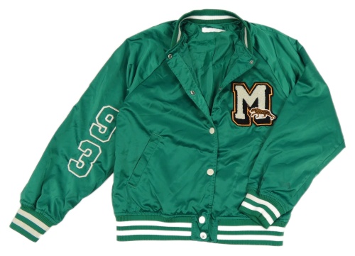 Zelený saténový bomber s písmenem a číslami H&M