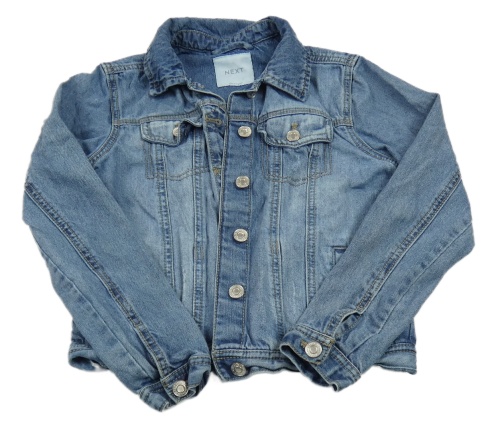 Modrá rifľová crop bunda vyšúchaného vzhledu a golierikom Next
