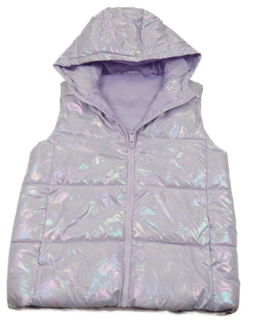 Levandulová metalická prešívaná šušťáková zateplená vesta s kapucňou St. Bernard