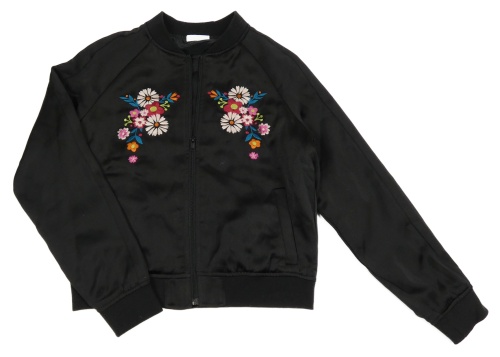 Černý saténový crop podšitý bomber s kvetmi Matalan