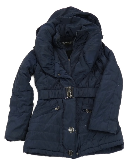 Tmavomodrá šušťáková zimná bunda s opaskom
