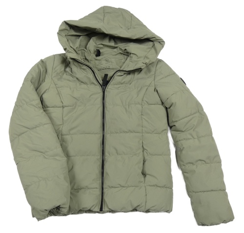 Khaki prešívaná šušťáková zimná bunda s nášivkou a kapucňou C&A