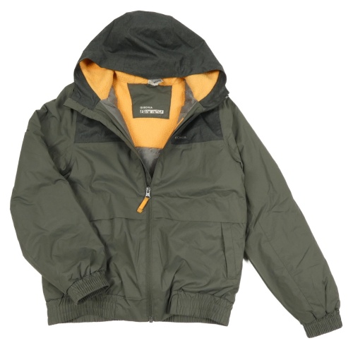 • Tmavokhaki/šedá šušťáková funkčná zateplená bunda s logom a kapucňou Quechua