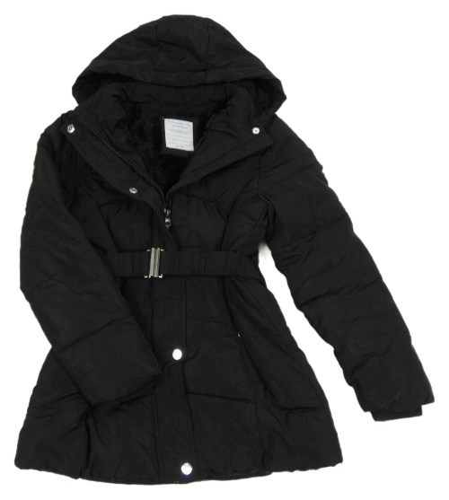 Čierny šušťákový zimný kabát s opaskom a kapucňou Primark