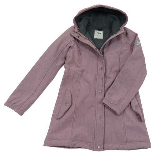 Nové - starorůžovo-sivá melírovaná softshellová parka s nášivkou a kapucňou YIGGA