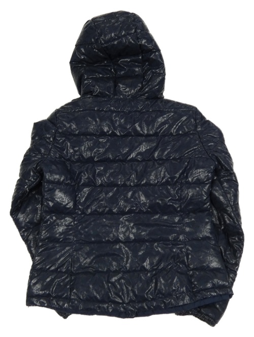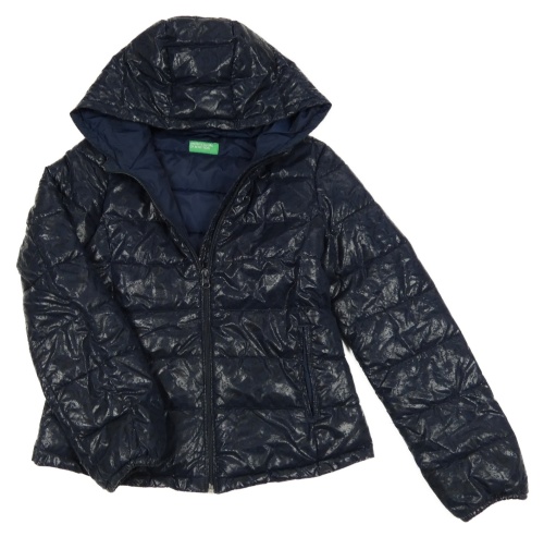 Tmavomodro-čierna šušťáková prešívaná zateplená bunda s kapucňou Benetton