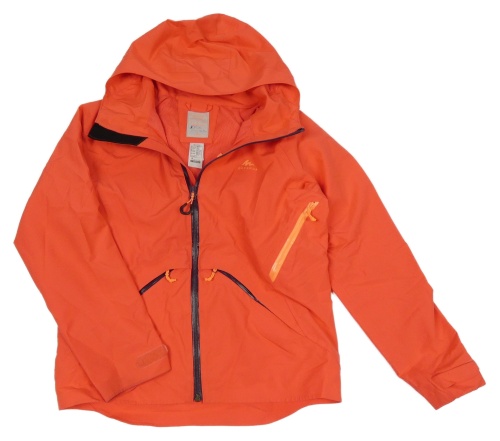 Neónově korálková šušťáková funkčná bunda s kapucňou Quechua