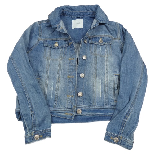 Modrá rifľová crop bunda s vyšúchaním a golierikom Next