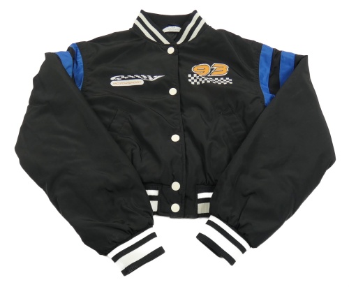 Černý šusťákový zateplený crop bomber s číslom a pruhmi H&M