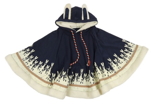 Tmavomodré teplákové pončo so zajačikmi a kapucňou