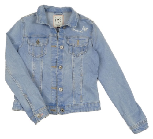Svetlomodrá rifľová crop bunda s nápisom C&A