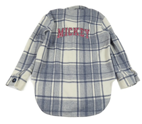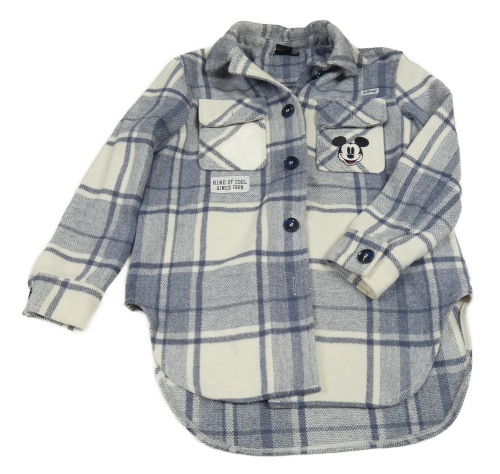 Modrošedo-biela kockovaná košeľová bunda s Mickeym Disney