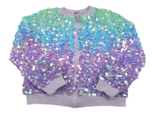 Lila-zelená flitrová podšitá bunda