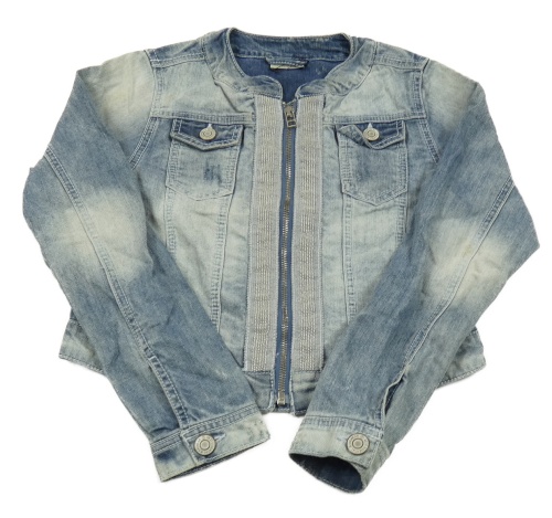 Modrá melírovaná crop rifľová bunda s kamienkami Next