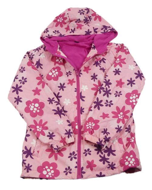 Svetloružová kvetovaná šušťáková jesenná bunda s kapucňou