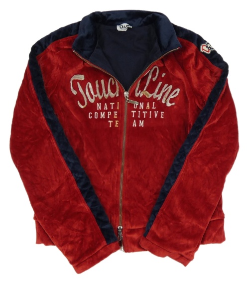 Červeno-tmavomodrá zamatová podšitá bunda s nápisom