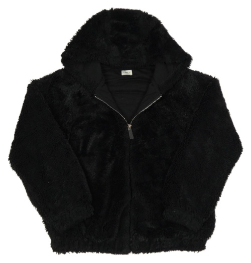 Čierna chlpatá podšitá bunda s kapucňou F&F